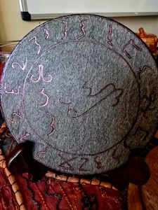 This handcrafted altar tile features the traditional Sigil of Lucifer, carefully burned into wood and finished with a matte black stain and red metallic accents.